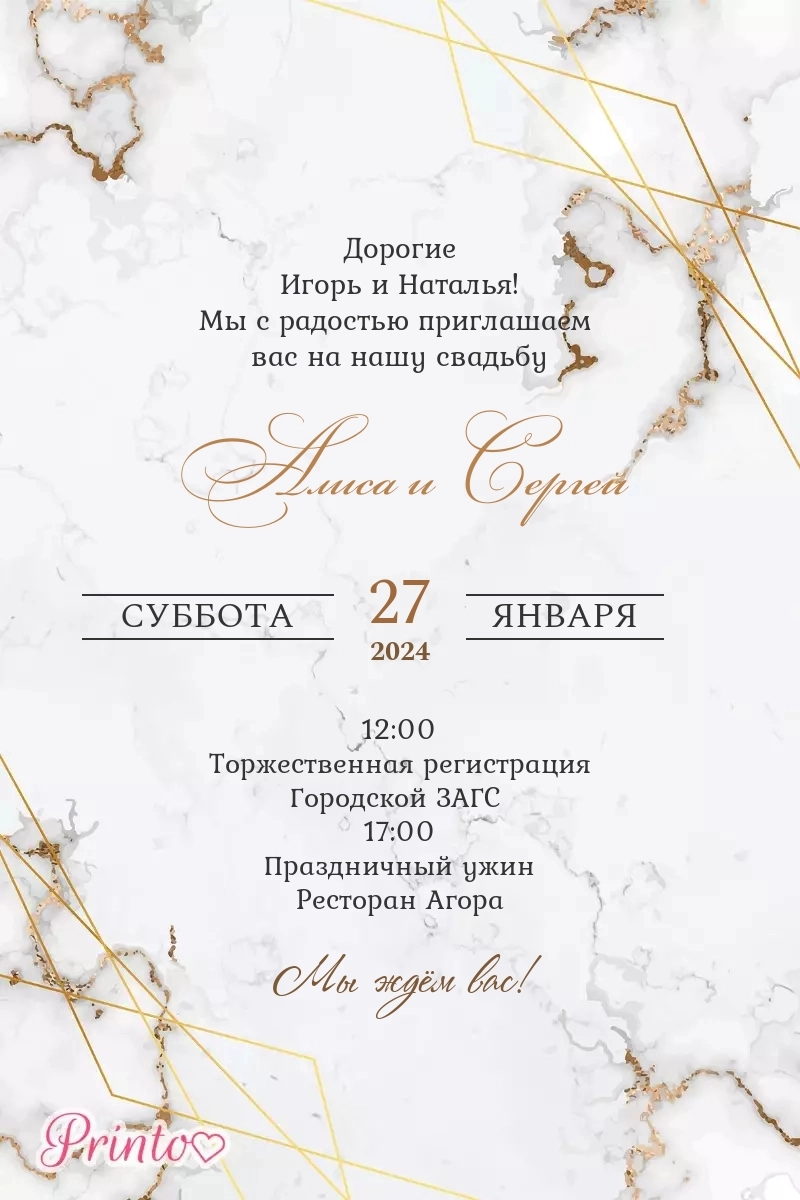 Именное приглашение для гостей - на каждое приглашение будет автоматически подставлено имена и обращение к гостям.