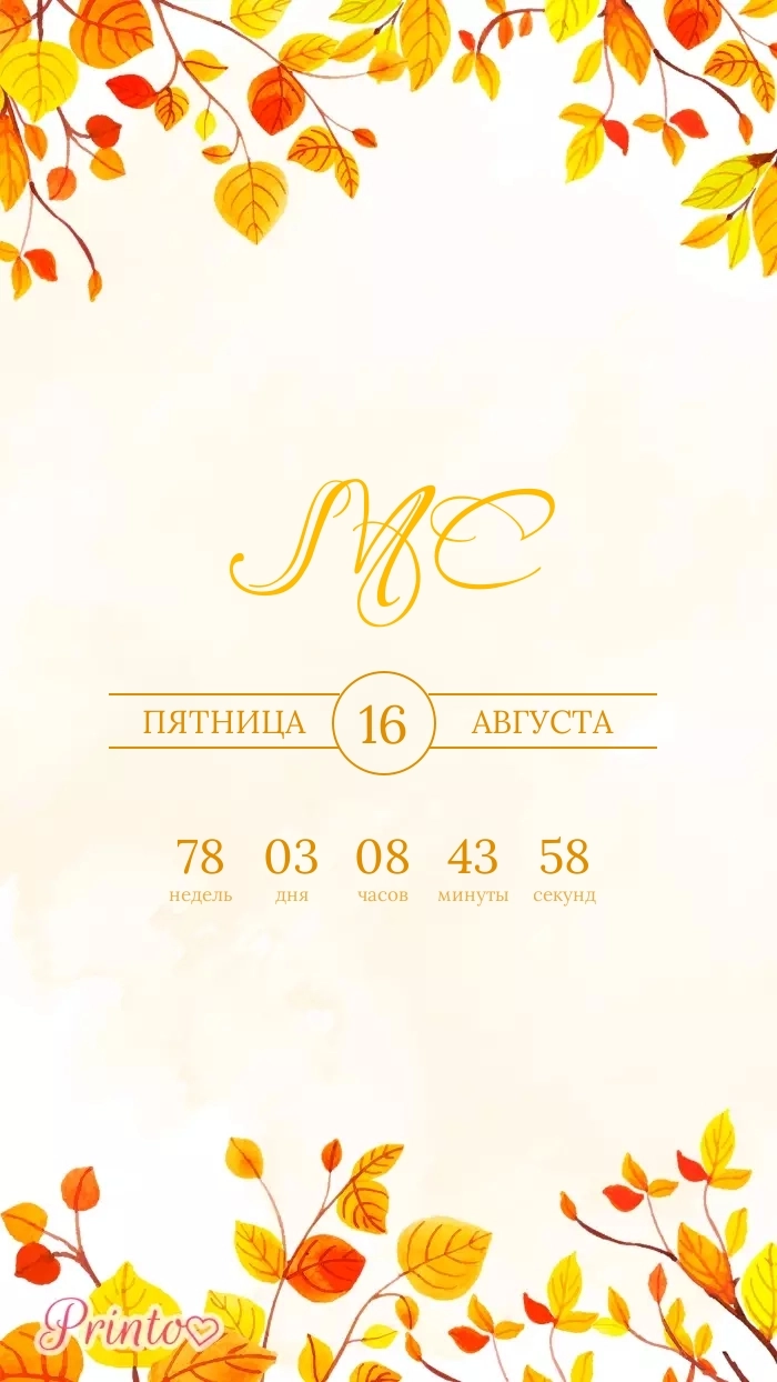 Разместите на нём имена жениха и невесты, дату, а так же обратный отсчёт до свадьбы.
