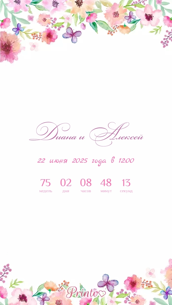 Разместите на нём имена жениха и невесты, дату, а так же обратный отсчёт до свадьбы.
