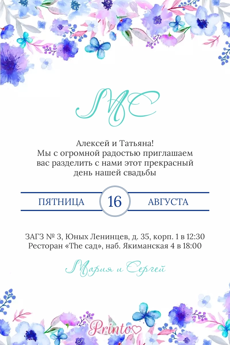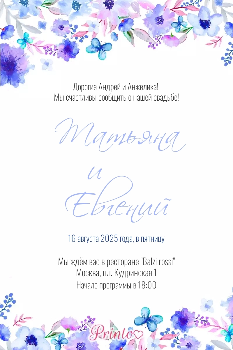 Именное приглашение для гостей - на каждое приглашение будет автоматически подставлено имена и обращение к гостям.