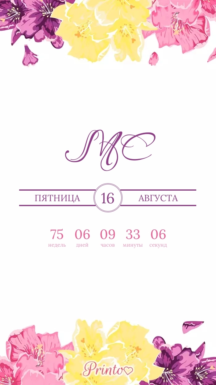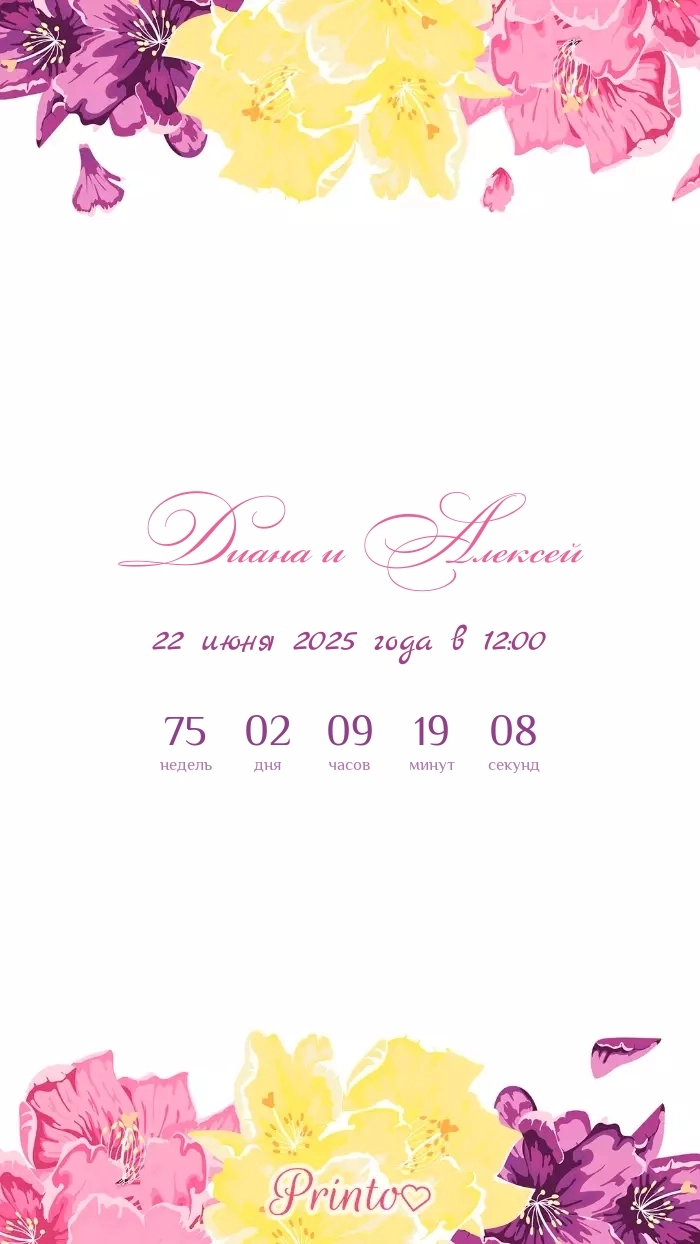 Разместите на нём имена жениха и невесты, дату, а так же обратный отсчёт до свадьбы.