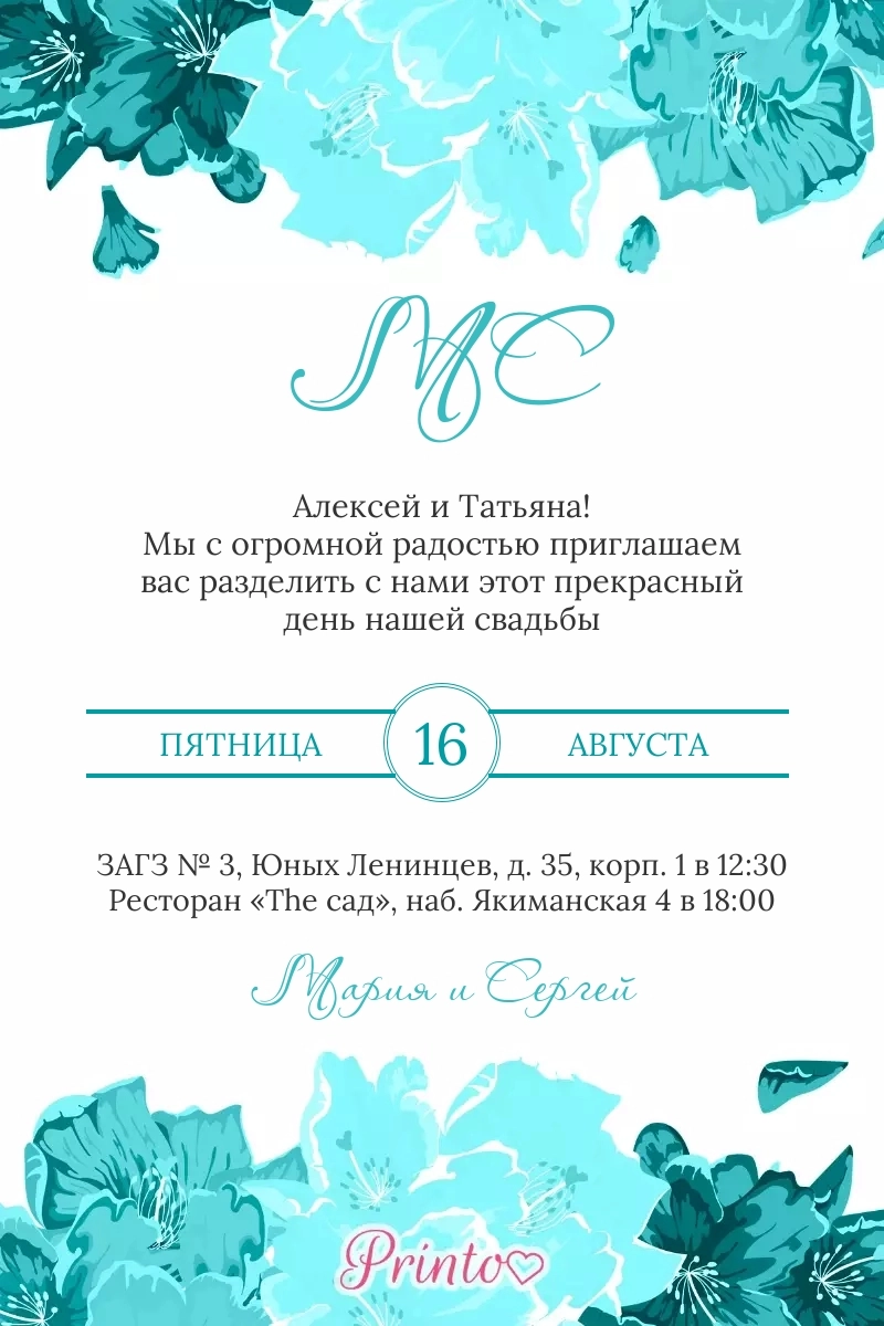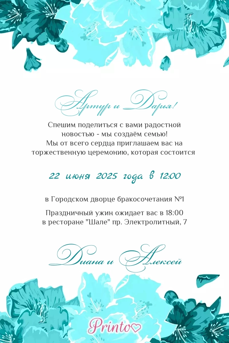 Печатное приглашение на свадьбу