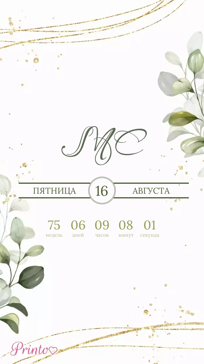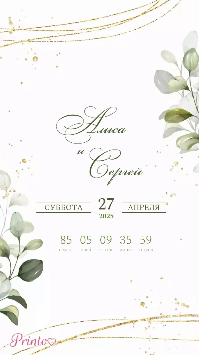 Разместите на нём имена жениха и невесты, дату, а так же обратный отсчёт до свадьбы.