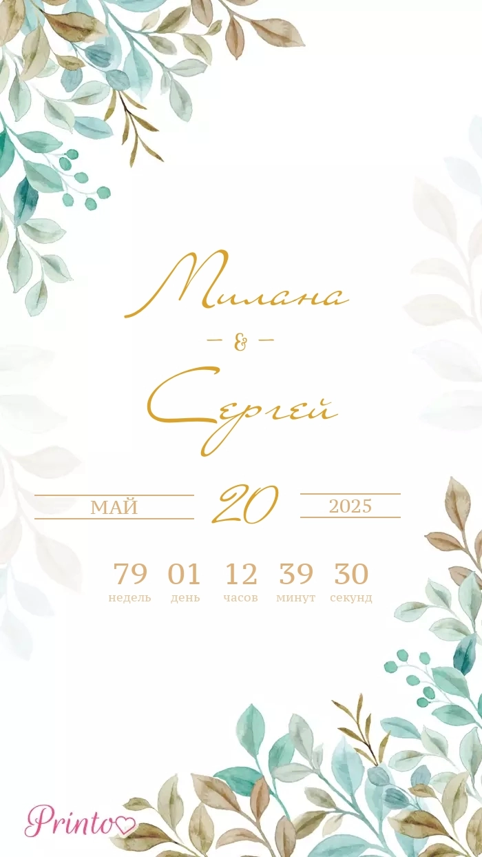 Разместите на нём имена жениха и невесты, дату, а так же обратный отсчёт до свадьбы.