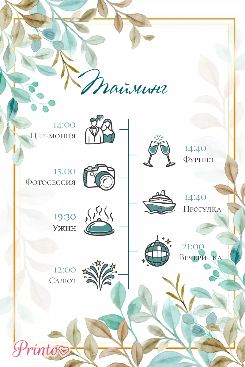 Расскажите гостям о программе свадьбы. Укажите время начала и окончания, а так же основные мероприятия.
