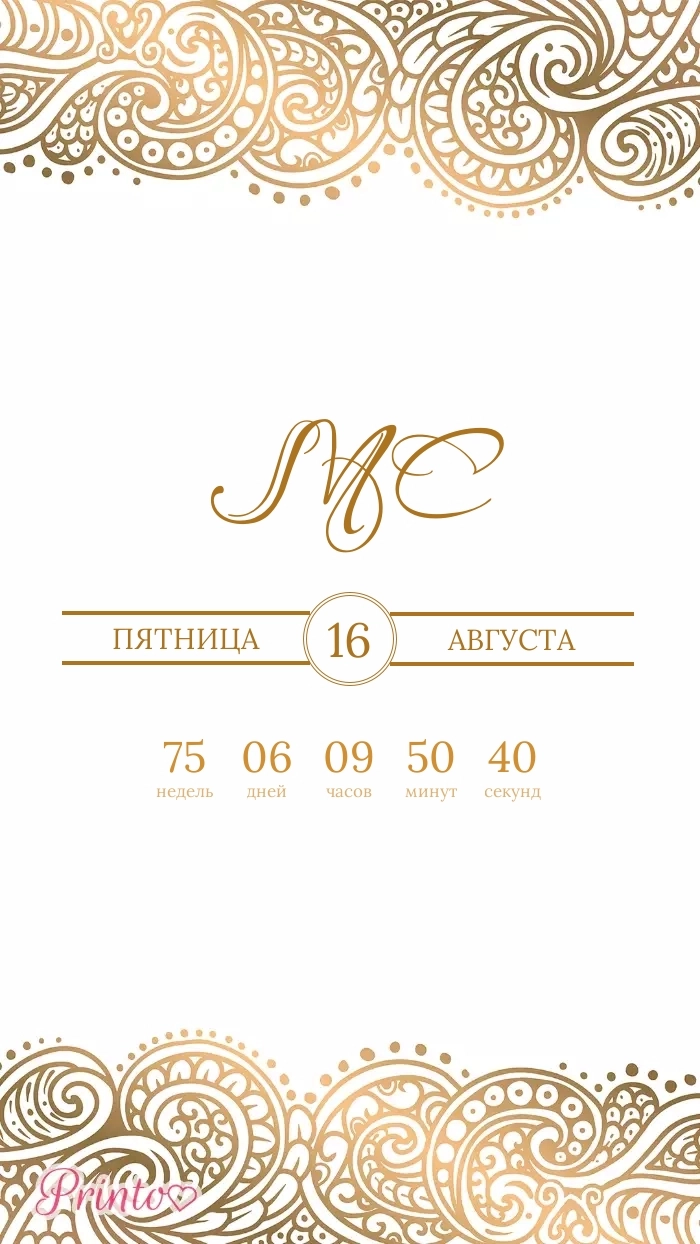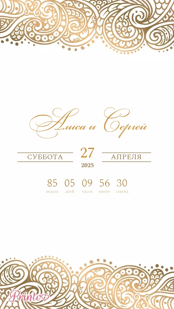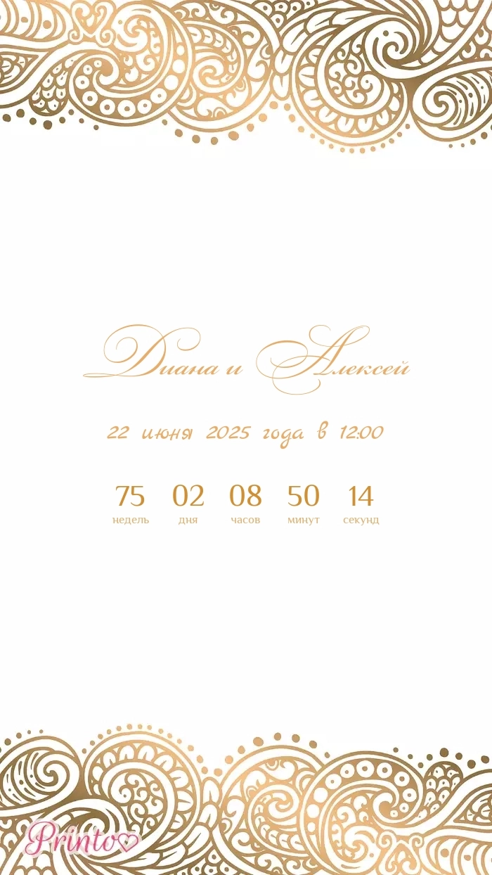 Разместите на нём имена жениха и невесты, дату, а так же обратный отсчёт до свадьбы.