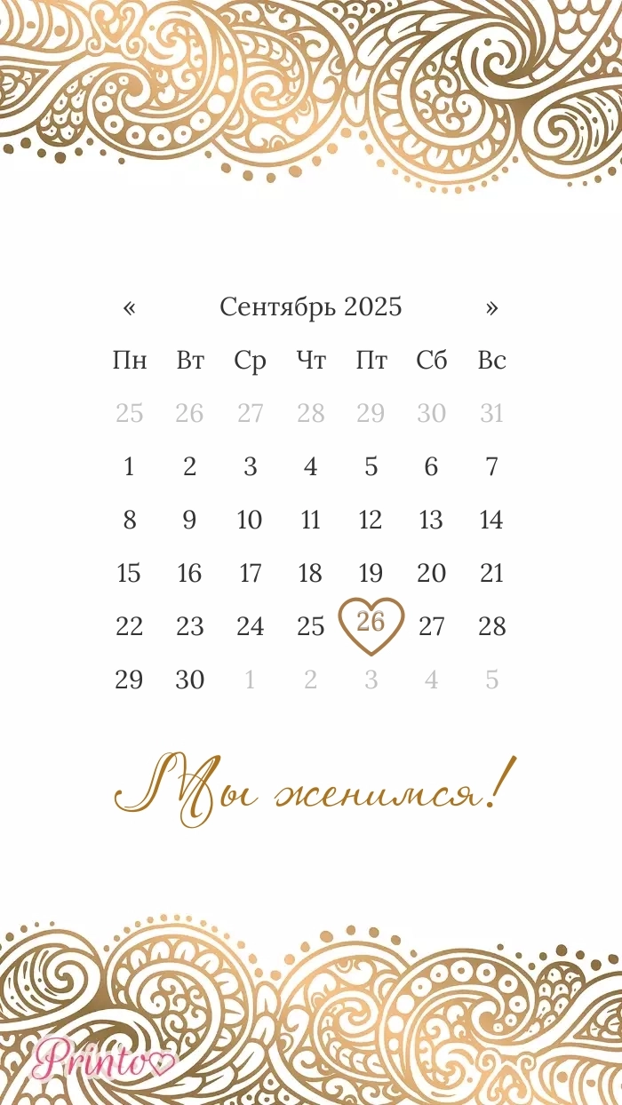 Разместите на нём имена жениха и невесты, дату, а так же обратный отсчёт до свадьбы.