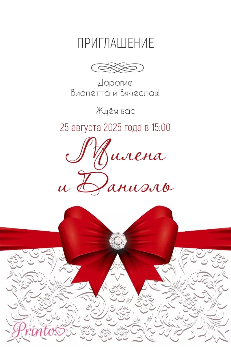 Именное приглашение для гостей - на каждое приглашение будет автоматически подставлено имена и обращение к гостям.