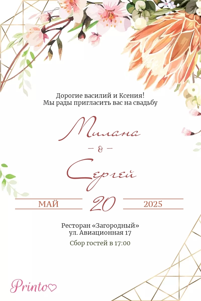 Именное приглашение для гостей - на каждое приглашение будет автоматически подставлено имена и обращение к гостям.