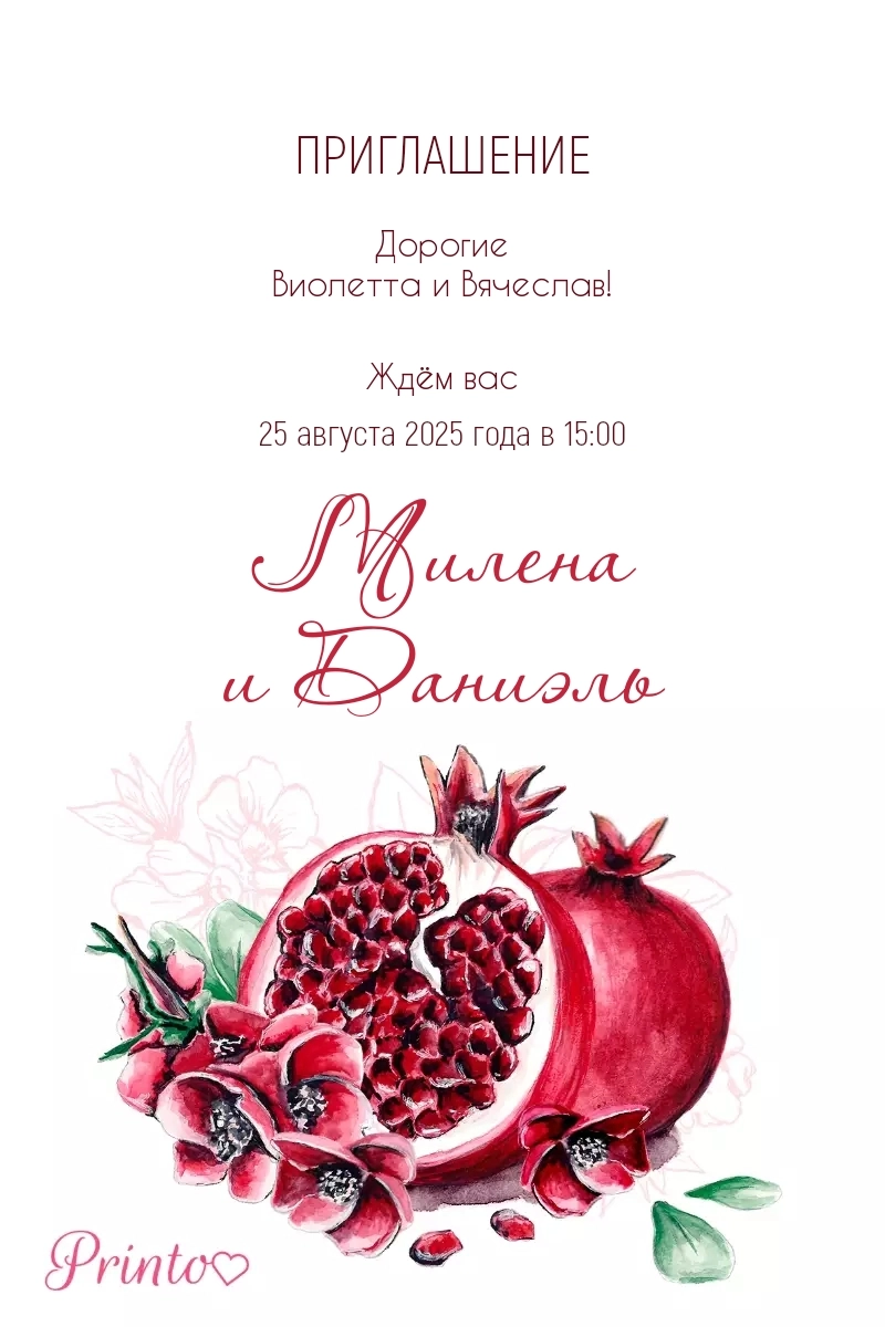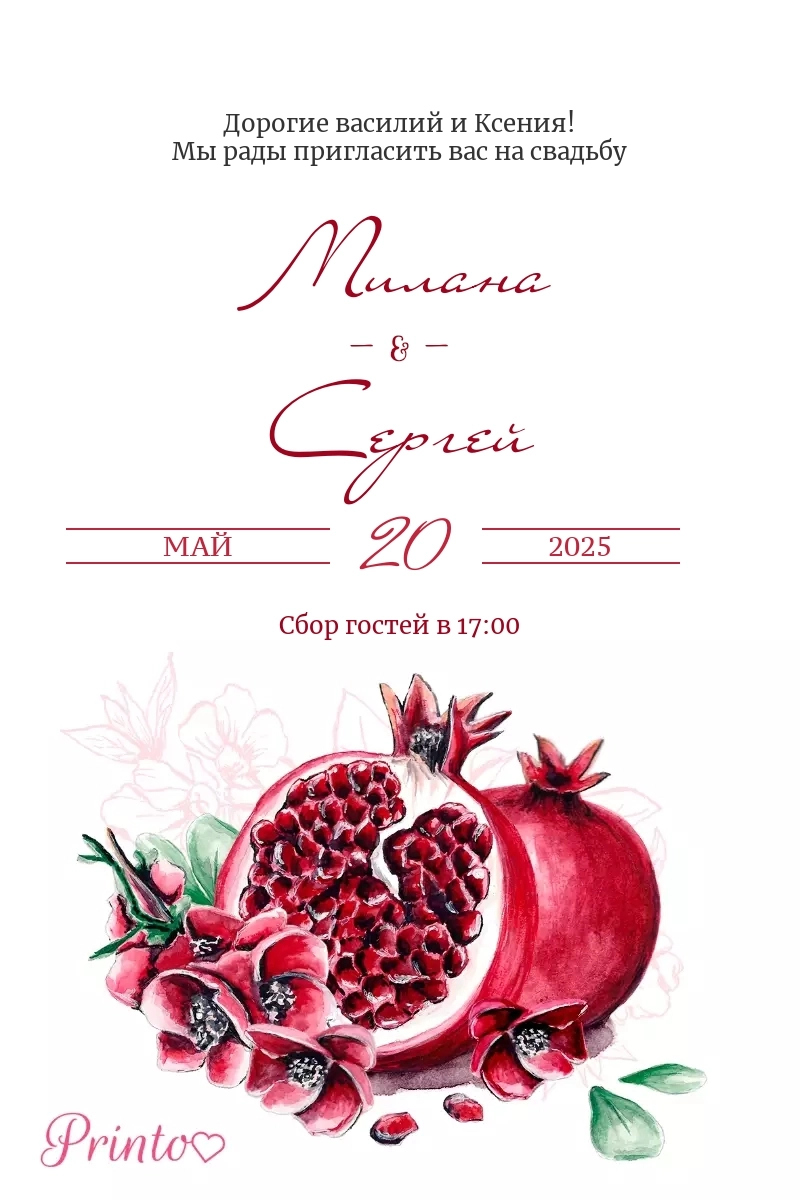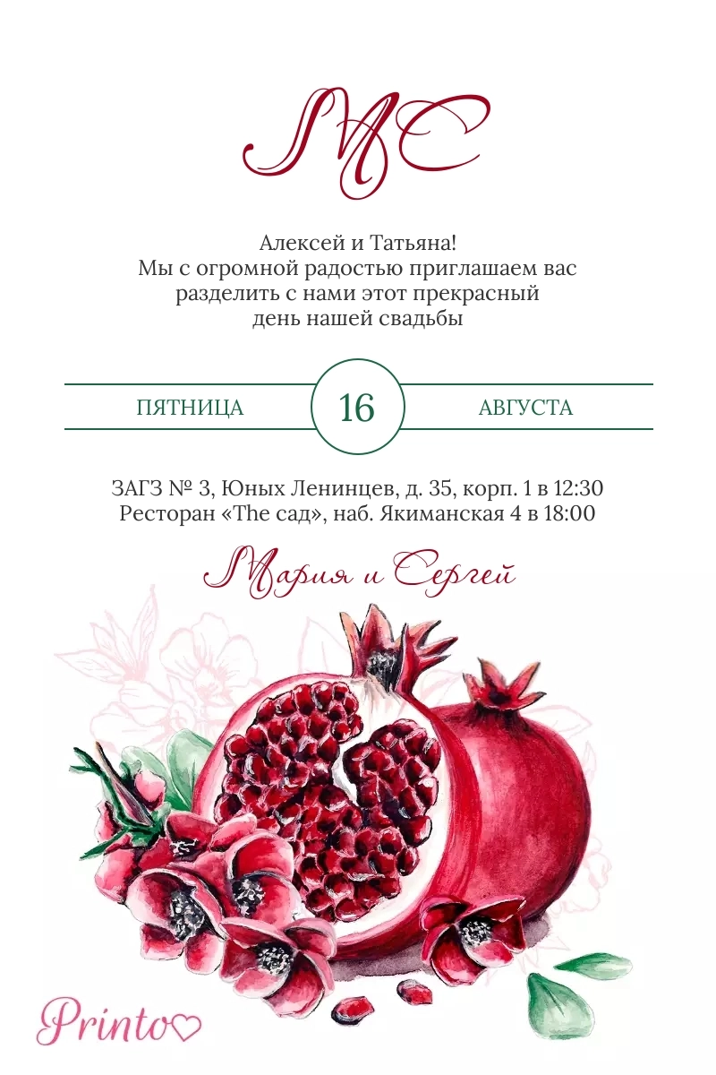 Печатное приглашение на свадьбу