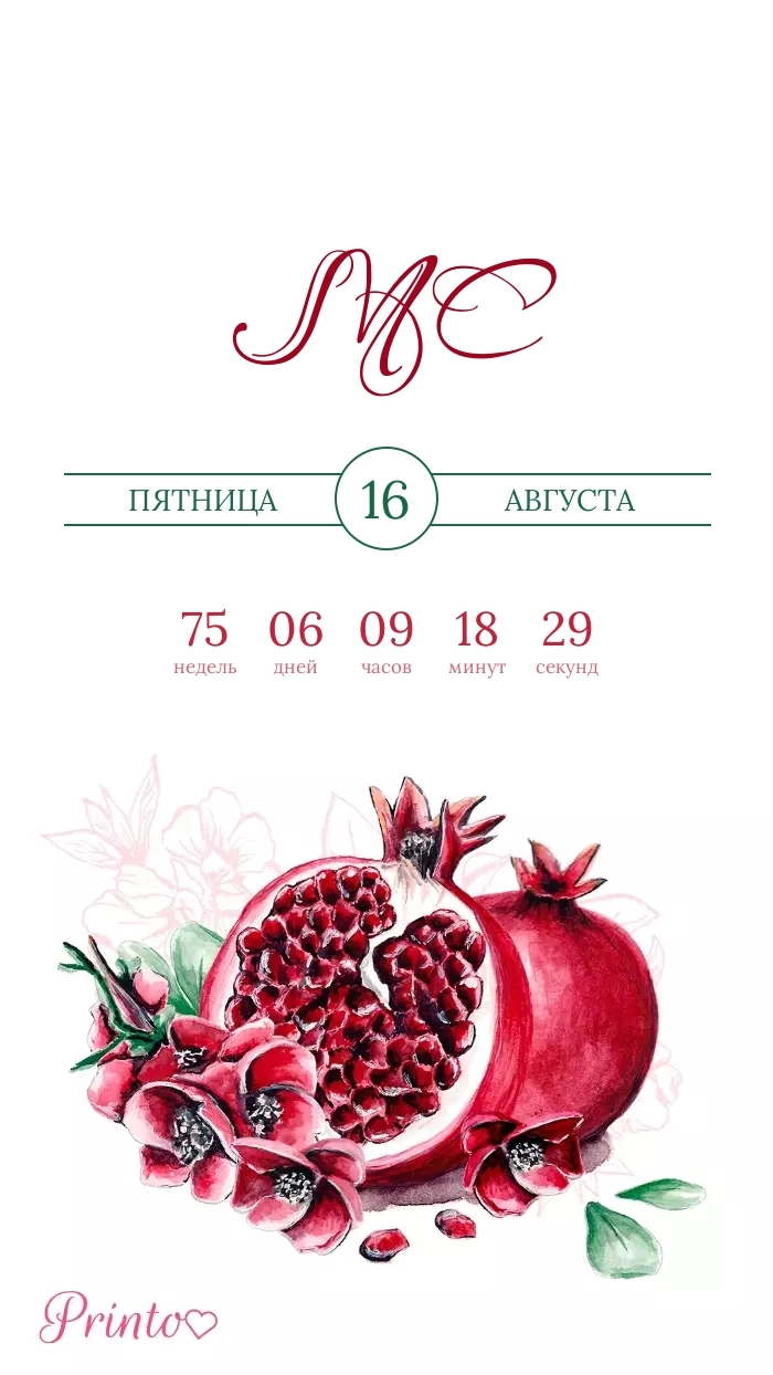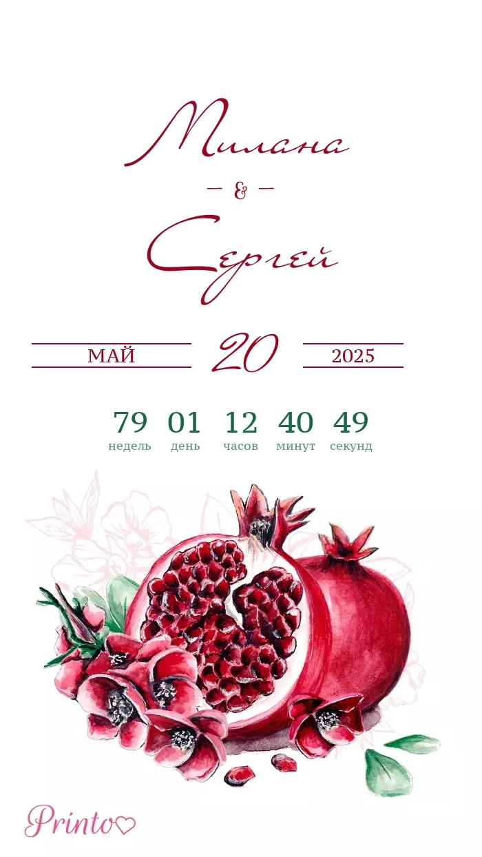 Разместите на нём имена жениха и невесты, дату, а так же обратный отсчёт до свадьбы.