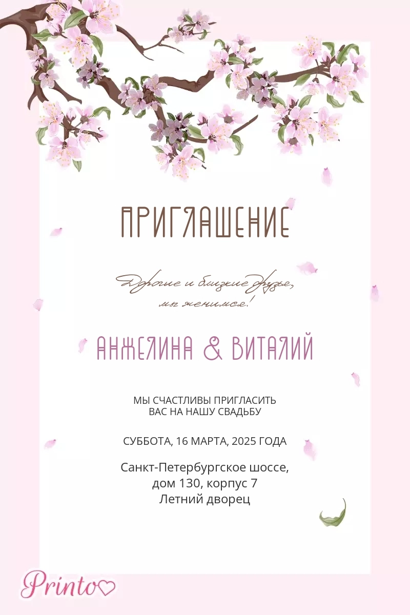 Именное приглашение для гостей - на каждое приглашение будет автоматически подставлено имена и обращение к гостям.