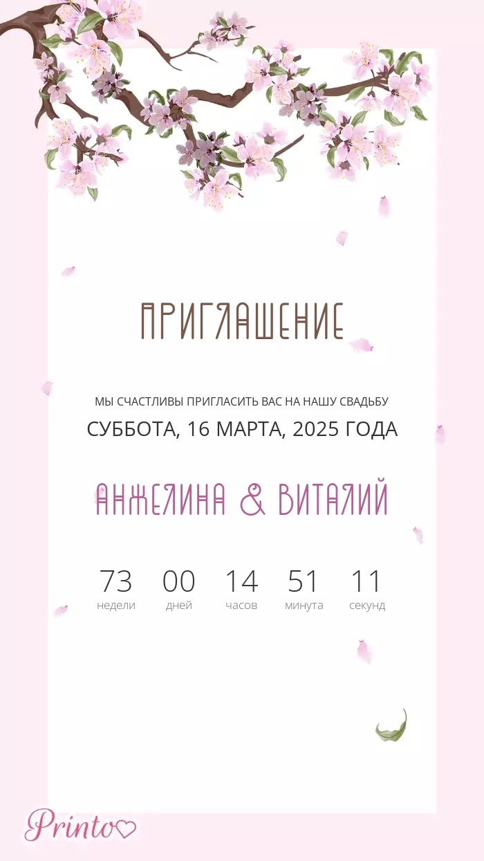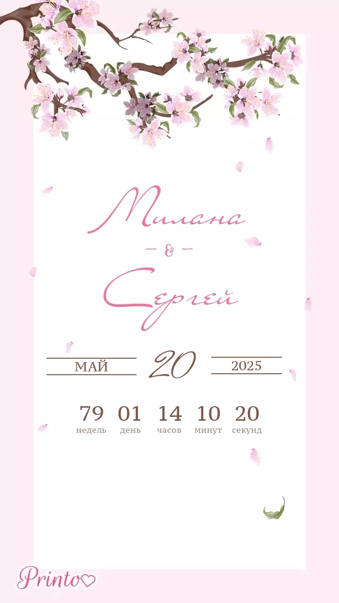 Разместите на нём имена жениха и невесты, дату, а так же обратный отсчёт до свадьбы.