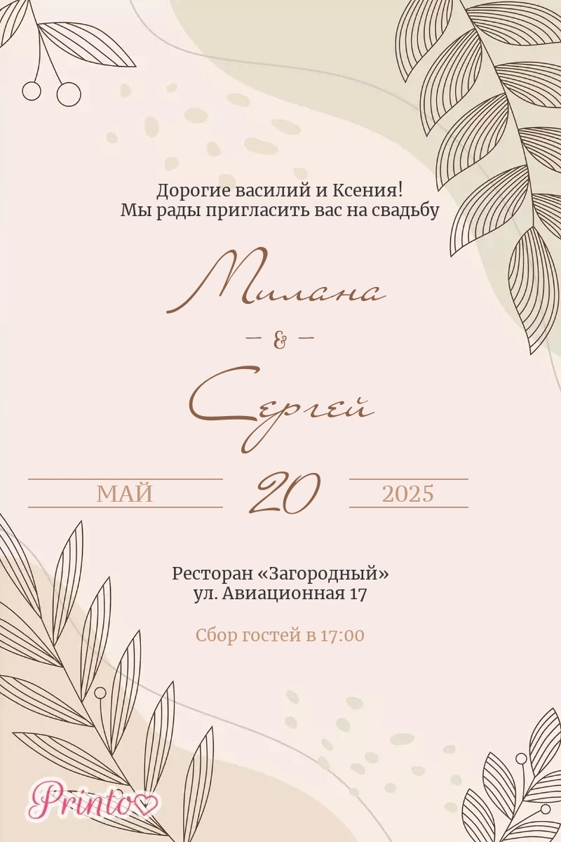 Печатное приглашение на свадьбу