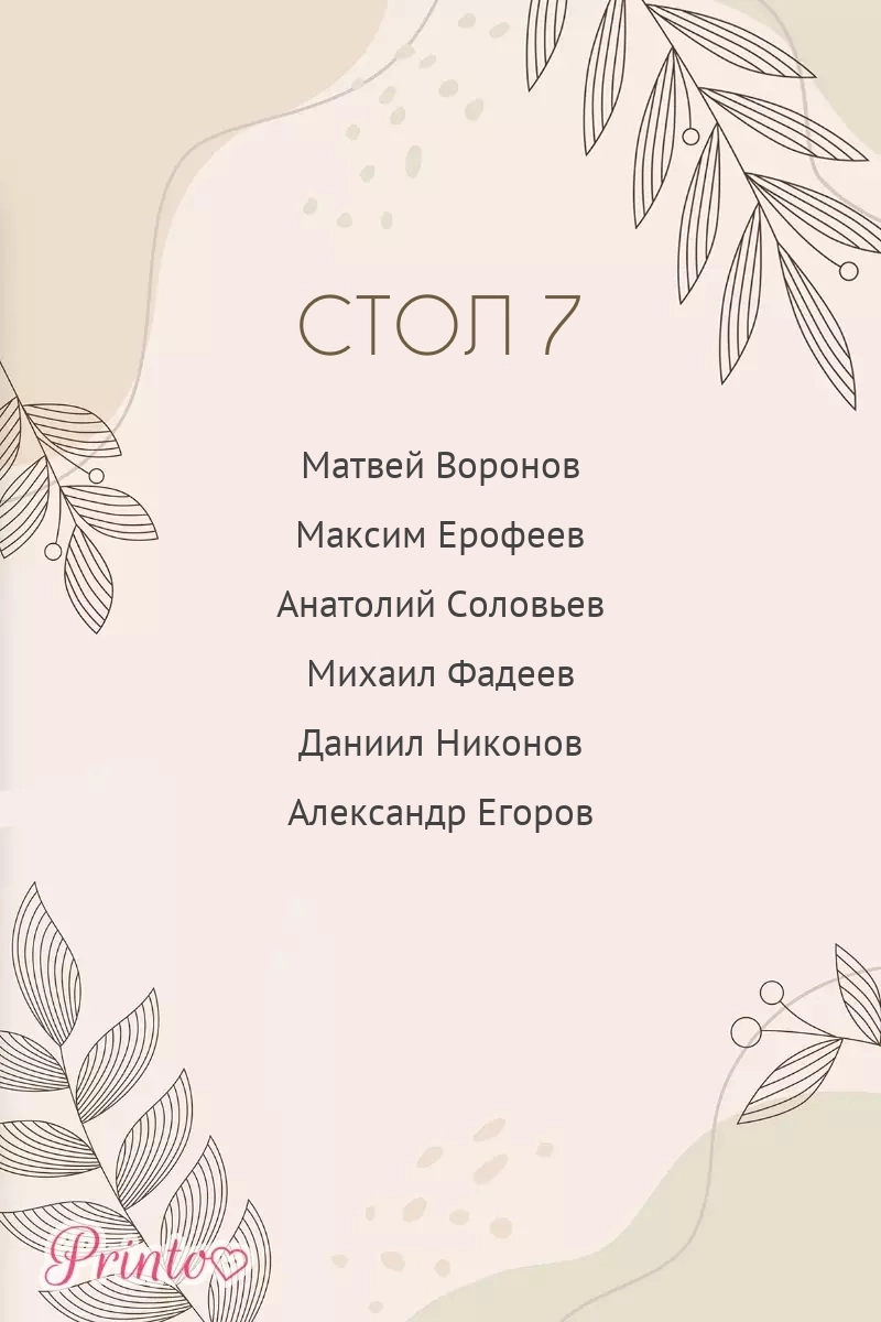 План рассадки на стол