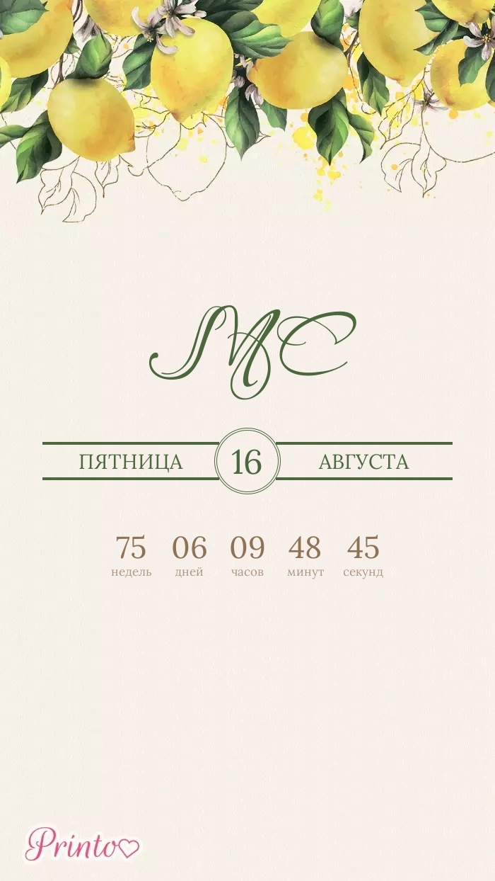 Разместите на нём имена жениха и невесты, дату, а так же обратный отсчёт до свадьбы.