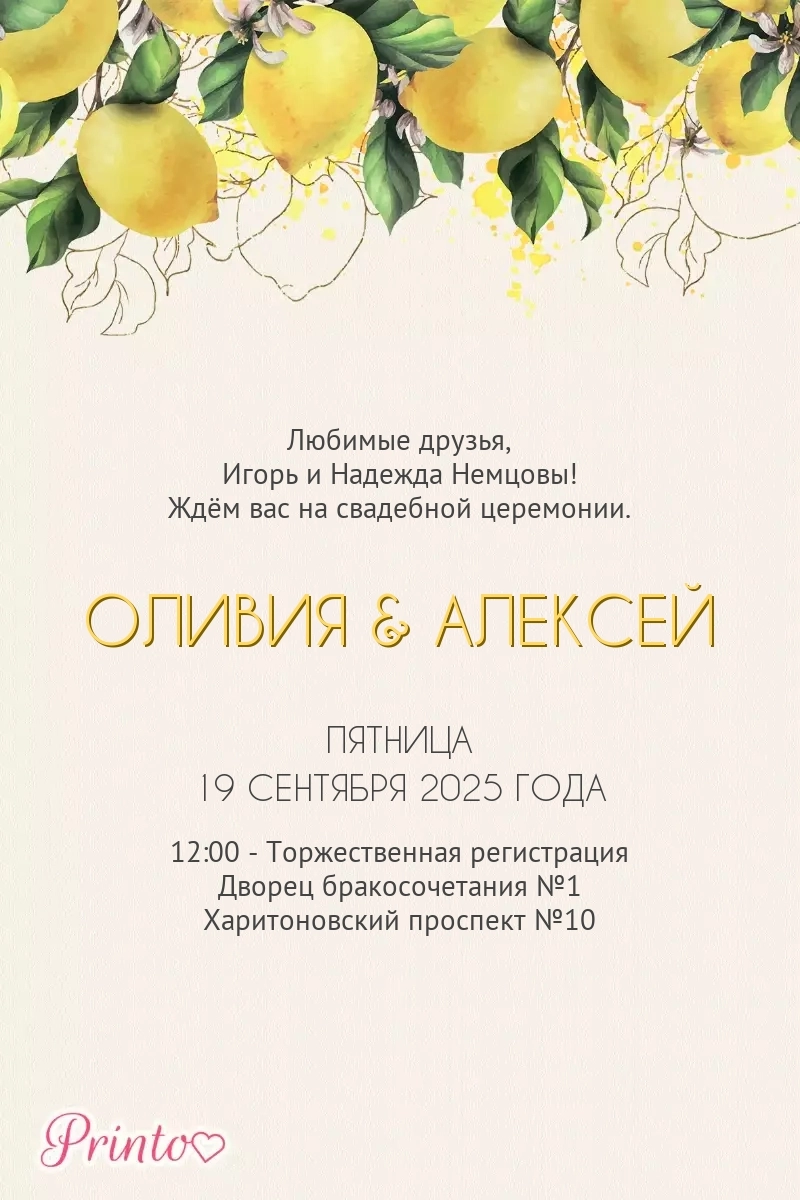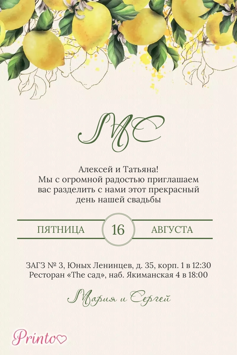 Печатное приглашение на свадьбу