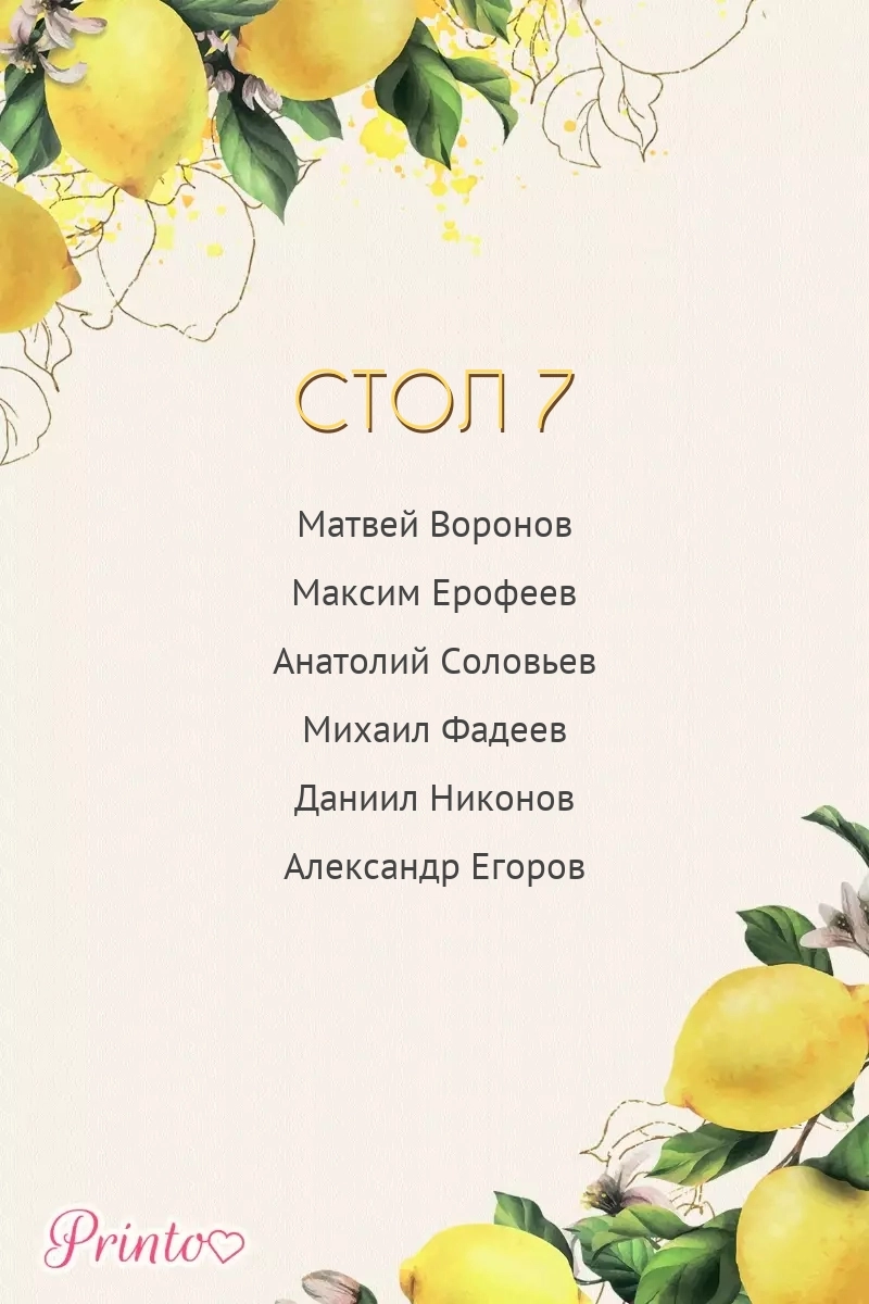 План рассадки на стол