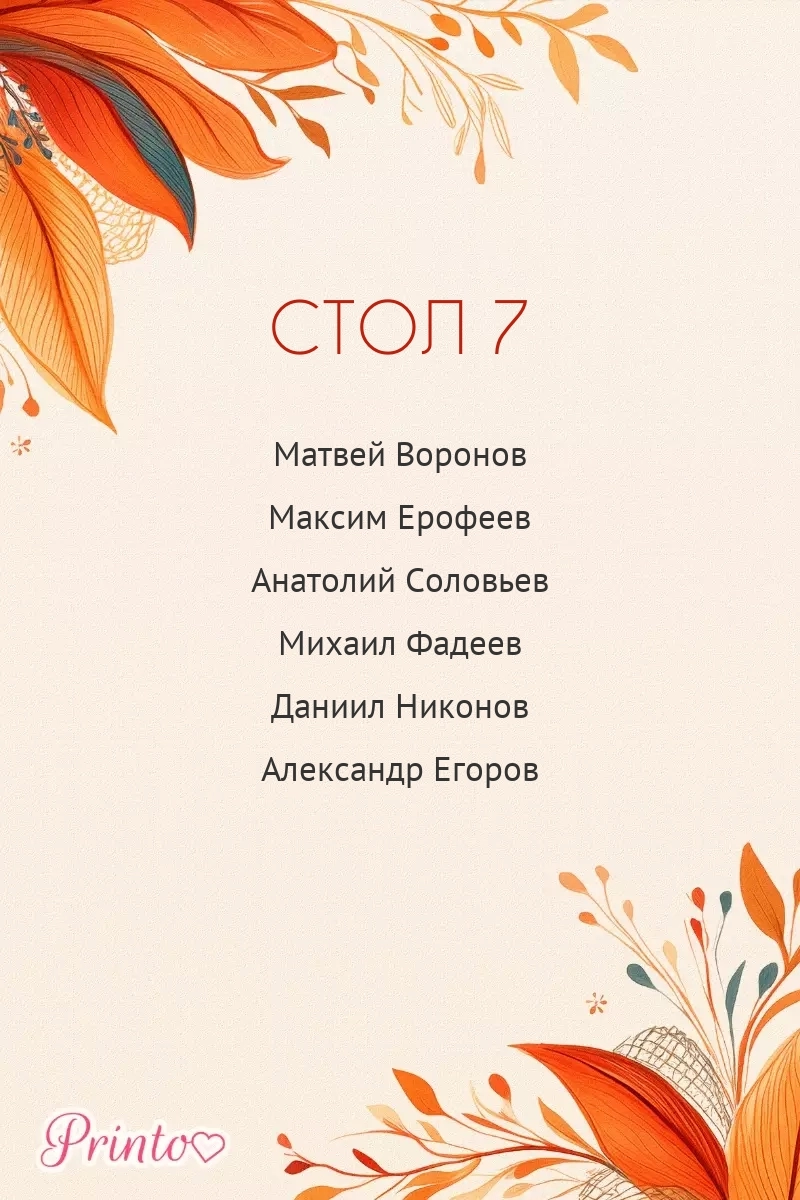 На плане рассадки обычно указывают номера столов и имена гостей, которые сидят за каждым столом.