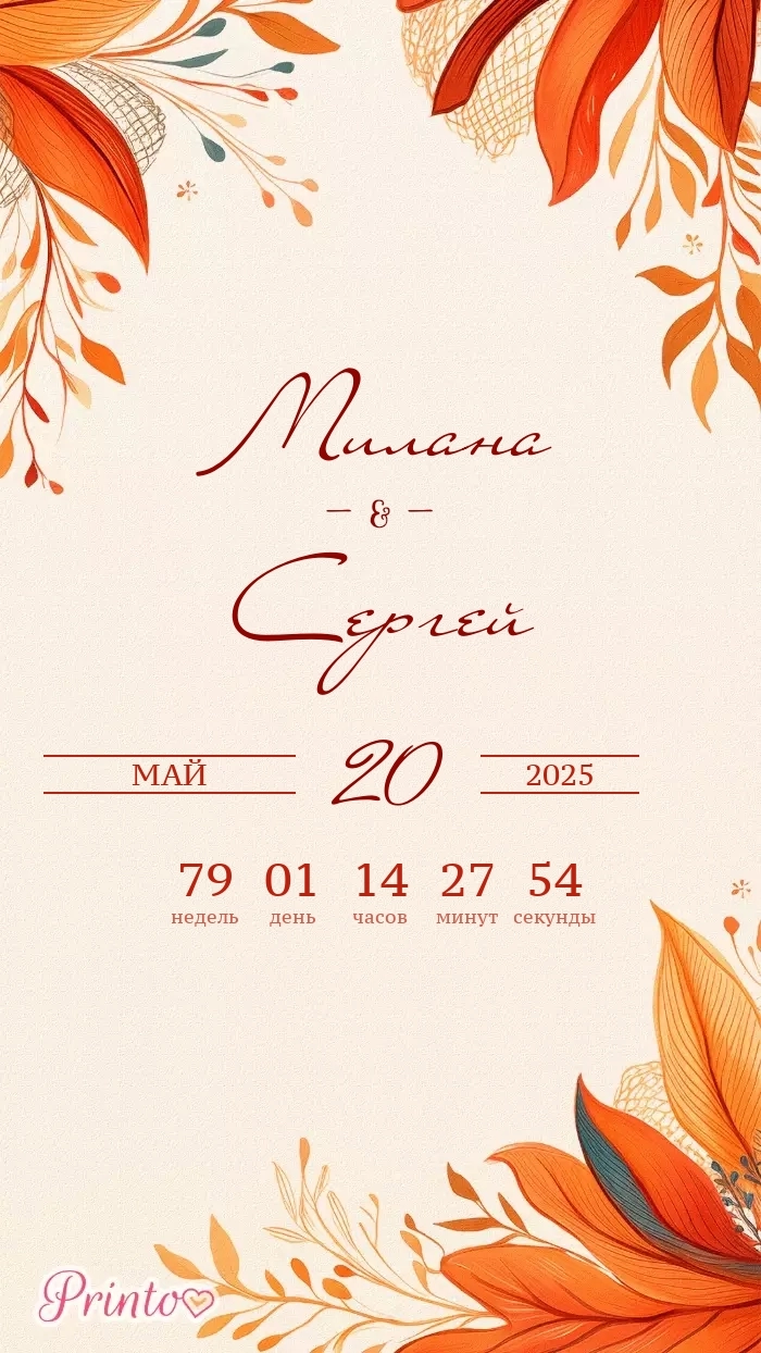 Разместите на нём имена жениха и невесты, дату, а так же обратный отсчёт до свадьбы.